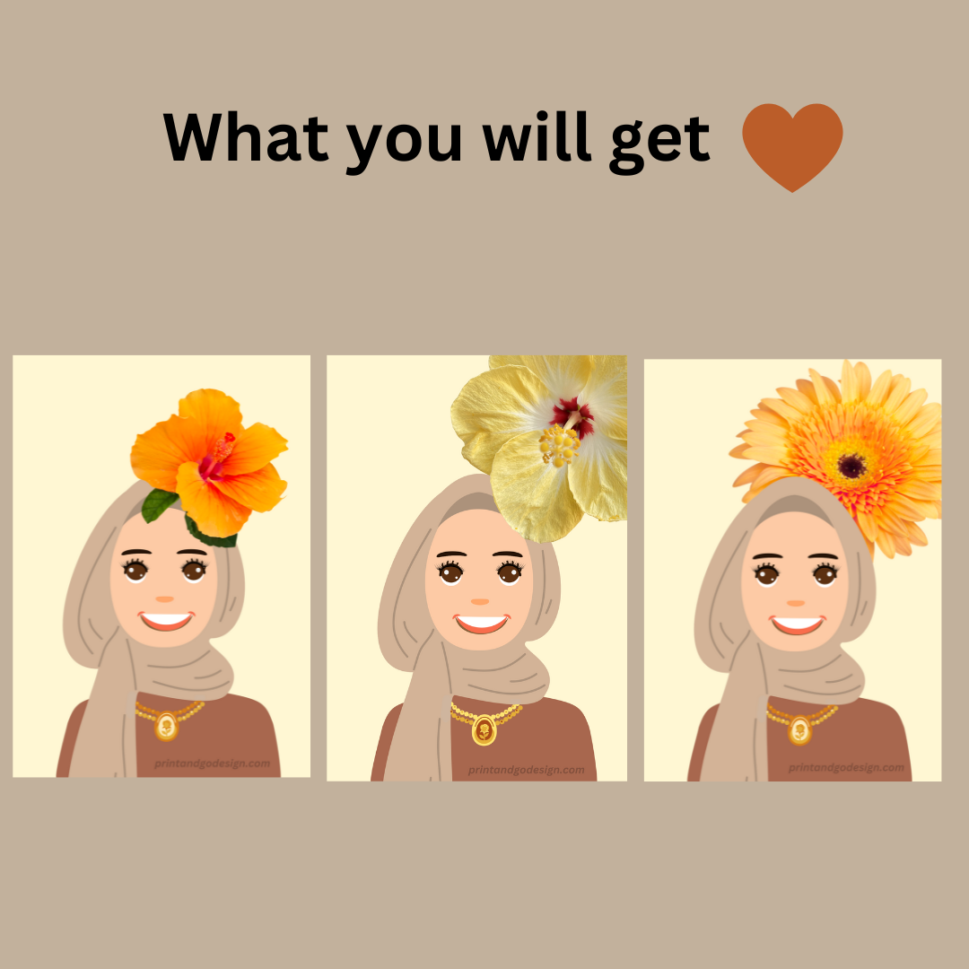 3 Printable Hijab Portrait. You can Download and Print Unlimited Copies